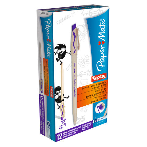 PAPER-MATE - Penna a sfera cancellabile paper mate replay in conf. Da 12 penne violetto - S0851431