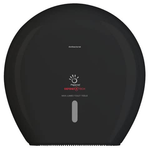 PAPERNET - Dispenser antibatterico per carta igienica maxi jumbo defend tech - 34,5x34,5x14,8 cm nero - 417205