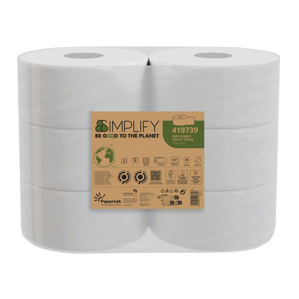 PAPERNET - Pacco 557 strappi carta igienica minijumbo goffratura mini simplify - 419739 - Confezione da 6 PZ