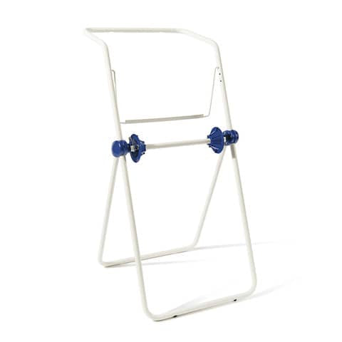 Portarotolo da terra in tubolare metallico verniciato, ripiegabile e semplice da trasportare, di ingombro ridotto con portasacco incorporato. Dimensioni: 56 x 43,5 x H.88,5 cm.