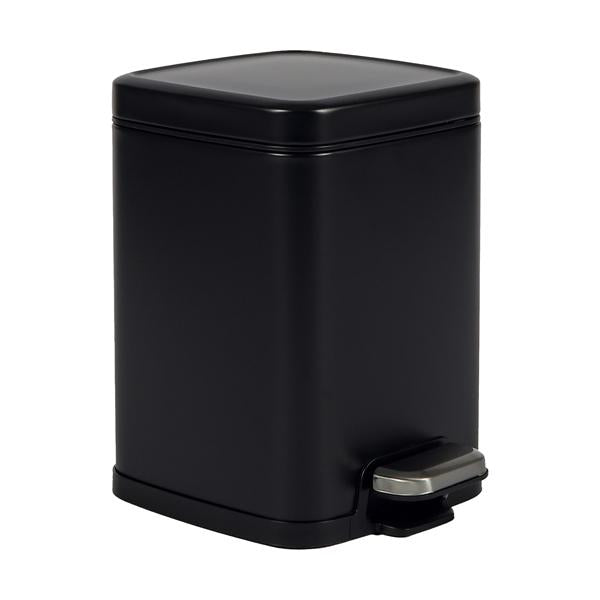 Bidone con pedale e vaschetta da 6l. Chiusura rallentata soft close. Materiale: acciaio verniciato nero satinato e ppl: dimensioni: 20x20x29cm.
