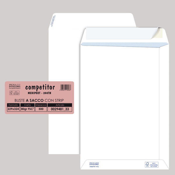 PIGNA-ENVELOPES - 500 buste sacco competitor fsc® bianca strip adesivo 230x330mm 80gr pigna envelo - 002948133