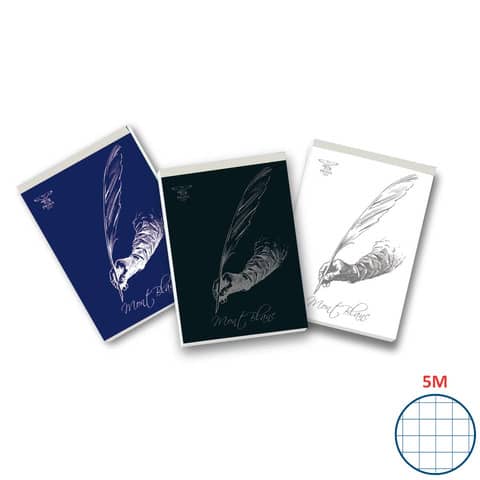 Blocchi A4 a punto metallico Pigna Mont Blanc da 70 fogli. Grammatura: 60 g/mq. Rigatura: quadretti 5M. Colore copertina: assortiti.