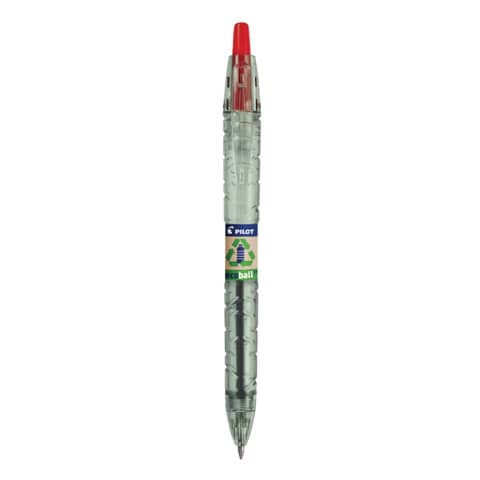 Penna a sfera a scatto B2P ricaricabile, ecologica perché realizzata con l’86% di plastica riciclata derivante da bottiglie, di cui il 2,5 % di materiale plastico recuperato negli oceani. Fusto trasparente, con clip. Punta 1 mm - tratto 0,27 mm - colore rosso. Lunghezza penna 14,5 cm. Peso 11 grammi.