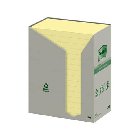 POST-IT®-RECYCLED-NOTES - Foglietti post-it® notes giallo 76x127mm carta riciclata torre da 16 blocchetti da 100 ff - 655-1T