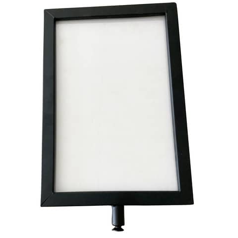 Display informativo formato A4 da applicare sopra alla colonnina segnapercorsi. Dimensioni 26x36 cm. Struttura in acciaio. Le indicazioni del foglio A4 inserite nel plexiglass consentono l'inserimento delle indicazioni su ambo i lati della lavagna.