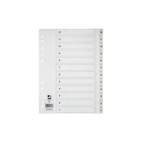 Q-CONNECT - Divisore numerico bianco 22,5x29,7 cm ppl 1-12 - KF00181 - Confezione risparmio da 5 PZ