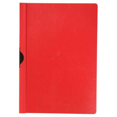Cartellina con clip realizzata in robusto PVC. Capacità 30 fogli formato A4. Fronte trasparente e retro colorato, clip in metallo nero. Colore: rosso.