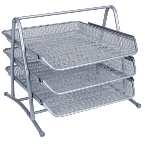 Set di 3 vaschette portadocumenti in metallo, rivestimento epossidico. Dimensioni (L x A x P): 27,8 x 27,5 x 35,0 cm. Colore argento.