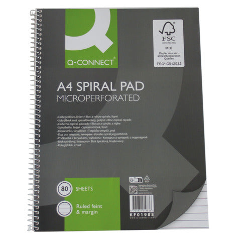 Q-CONNECT - Quaderno spiralato a4 - 80 ff 70 g/m² - rigatura 1r - KF01983 - Confezione da 2 PZ