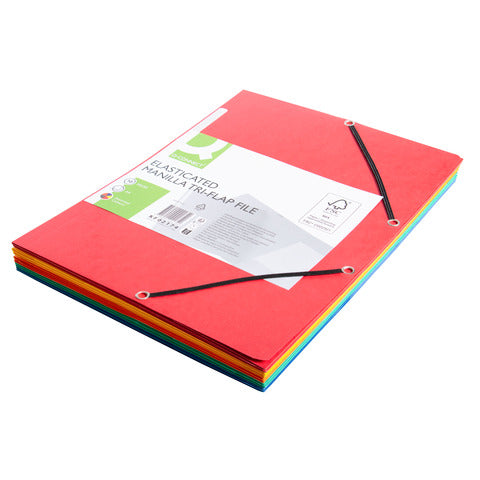 Cartellina 3 lembi con elastico in pregiato cartone manilla liscio 375g/m² dai colori intesi. Formato 32 x 24,3cm per A4, con elastico su entrambi gli angoli e targhetta di scrittura 8 x 1cm su retro elastico. Capienza 200 fogli. Colori assortiti 2 x rosso, giallo, blu, verde, arancio. Colore: assortiti.