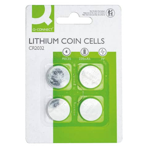 Q-CONNECT - Batterie al litio a bottone 3v cr2032 conf. 4 pezzi in blister - KF15036 - Confezione risparmio da 4 PZ