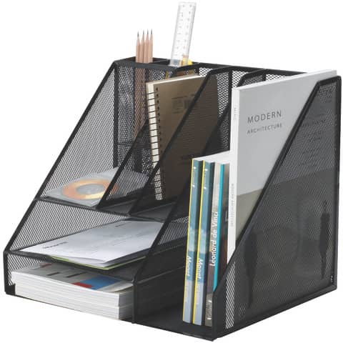 Portaoggetti da scrivania grande in finitura mesh. Dimensione 34,5x29x29,5 cm, 8 scomparti.