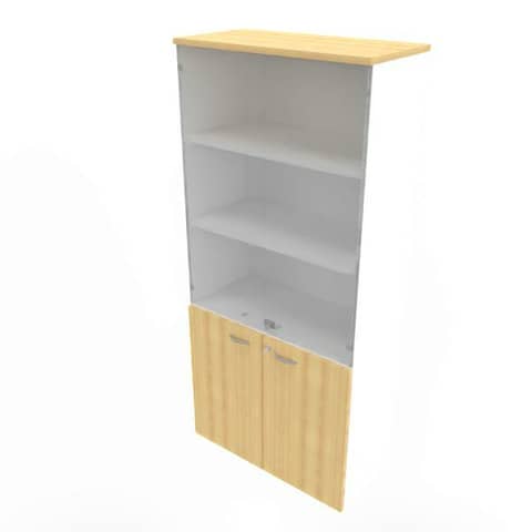Armadio super con ante base melaminico e ante maxi in vetro e scocca in pannello di conglomerato ligneo spessore 18 mm, rivestito su entrambi i lati con pannello melaminico antiriflesso, antigraffio e lavabile. Fianchi e fondo spessore 18 mm con bordatura sui 4 lati in tinta. Schienale spessore 8 mm. Ripiani spessore 25 mm con bordatura 4 lati in tinta e reggipiani a scomparsa spostabili in altezza ogni 32 mm. Coperchio spessore 25 mm con bordatura 3 lati in vista in ABS antiurto, in tinta, spessore 2 mm. N. 5 piedini livellatori in ABS regolabili in altezza dall'interno del mobile. Ante battenti in pannello di conglomerato ligneo spessore 18 mm rivestito con melaminico antiriflesso, antigraffio e lavabile, bordato sui 4 lati in ABS antiurto in tinta spessore 1,5 mm. Cerniere in metallo con apertura a 105°. Serratura con chiave pieghevole antinfortunistica. Ante in vetro trasparente spessore 4 mm con spigoli smussati e 4 lati bordo lucido. Cerniere in metallo e nylon con apertura a 90°. Serratura con chiave pieghevole antifortunistica. Scocca bianca. Finiture faggio. Dimensione: 90x45xH.200 cm. Quadrifoglio Sistemi d'Arredo presta particolare attenzione alle tematiche della qualità, dell’ambiente e della sicurezza per fornire un prodotto e un servizio all’altezza delle aspettative del mercato. L’azienda ha raggiunto le certificazioni UNI EN ISO 9001/2015, UNI EN ISO 14001/2015 e UNI EN ISO 45001/2018. Nel rispetto e nella tutela dell’ambiente, i prodotti Quadrifoglio sono certificati e garantiti da FSC™ e PANNELLO ECOLOGICO.