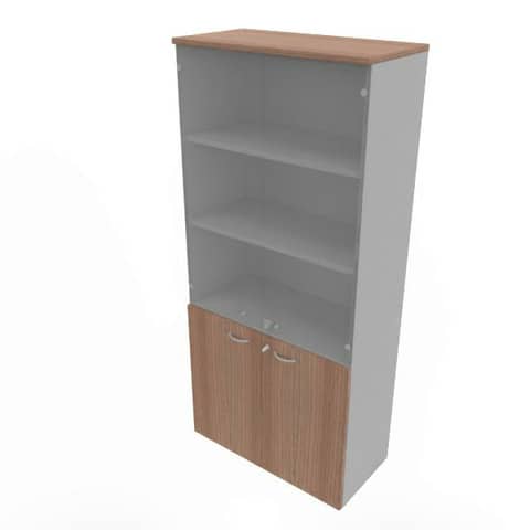 Armadio super con ante base melaminico e ante maxi in vetro e scocca in pannello di conglomerato ligneo spessore 18 mm, rivestito su entrambi i lati con pannello melaminico antiriflesso, antigraffio e lavabile. Fianchi e fondo spessore 18 mm con bordatura sui 4 lati in tinta. Schienale spessore 8 mm. Ripiani spessore 25 mm con bordatura 4 lati in tinta e reggipiani a scomparsa spostabili in altezza ogni 32 mm. Coperchio spessore 25 mm con bordatura 3 lati in vista in ABS antiurto, in tinta, spessore 2 mm. N. 5 piedini livellatori in ABS regolabili in altezza dall'interno del mobile. Ante battenti in pannello di conglomerato ligneo spessore 18 mm rivestito con melaminico antiriflesso, antigraffio e lavabile, bordato sui 4 lati in ABS antiurto in tinta spessore 1,5 mm. Cerniere in metallo con apertura a 105°. Serratura con chiave pieghevole antinfortunistica. Ante in vetro trasparente spessore 4 mm con spigoli smussati e 4 lati bordo lucido. Cerniere in metallo e nylon con apertura a 90°. Serratura con chiave pieghevole antifortunistica. Scocca grigio argento. Finiture noce canaletto. Dimensione: 90x45xH.200 cm. Quadrifoglio Sistemi d'Arredo presta particolare attenzione alle tematiche della qualità, dell’ambiente e della sicurezza per fornire un prodotto e un servizio all’altezza delle aspettative del mercato. L’azienda ha raggiunto le certificazioni UNI EN ISO 9001/2015, UNI EN ISO 14001/2015 e UNI EN ISO 45001/2018. Nel rispetto e nella tutela dell’ambiente, i prodotti Quadrifoglio sono certificati e garantiti da FSC™ e PANNELLO ECOLOGICO.