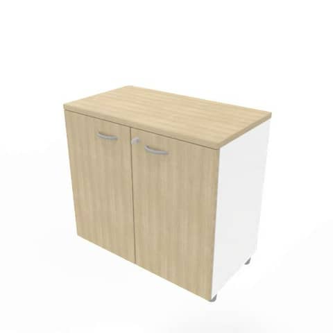 QUADRIFOGLIO - Armadio basso altezza scrivania ante rovere scocca bianca 80x45xh.73 cm practika - ECEB80B-RK-BA-RK