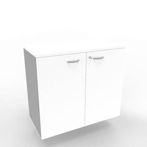 Armadio base con ante battenti e scocca in pannello di conglomerato ligneo spessore 18 mm, rivestito su entrambi i lati con pannello melaminico antiriflesso, antigraffio e lavabile. Fianchi e fondo spessore 18 mm con bordatura sui 4 lati in tinta. Schienale spessore 8 mm. Ripiani spessore 25 mm con bordatura 4 lati in tinta e reggipiani a scomparsa spostabili in altezza ogni 32 mm. Coperchio spessore 25 mm con bordatura 3 lati in vista in ABS antiurto, in tinta, spessore 2 mm. N. 5 piedini livellatori in ABS regolabili in altezza dall'interno del mobile. Ante battenti in pannello di conglomerato ligneo spessore 18 mm rivestito con melaminico antiriflesso, antigraffio e lavabile, bordato sui 4 lati in ABS antiurto in tinta spessore 1,5 mm. Cerniere in metallo con apertura a 105°. Serratura con chiave pieghevole antinfortunistica. Scocca grigio argento. Finiture bianco. Dimensione: 90x45xH.81,5 cm. Quadrifoglio Sistemi d'Arredo presta particolare attenzione alle tematiche della qualità, dell’ambiente e della sicurezza per fornire un prodotto e un servizio all’altezza delle aspettative del mercato. L’azienda ha raggiunto le certificazioni UNI EN ISO 9001/2015, UNI EN ISO 14001/2015 e UNI EN ISO 45001/2018. Nel rispetto e nella tutela dell’ambiente, i prodotti Quadrifoglio sono certificati e garantiti da FSC™ e PANNELLO ECOLOGICO.