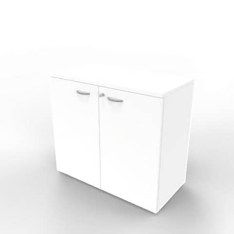 Armadio base con ante battenti e scocca in pannello di conglomerato ligneo spessore 18 mm, rivestito su entrambi i lati con pannello melaminico antiriflesso, antigraffio e lavabile. Fianchi e fondo spessore 18 mm con bordatura sui 4 lati in tinta. Schienale spessore 8 mm. Ripiani spessore 25 mm con bordatura 4 lati in tinta e reggipiani a scomparsa spostabili in altezza ogni 32 mm. Coperchio spessore 25 mm con bordatura 3 lati in vista in ABS antiurto, in tinta, spessore 2 mm. N. 5 piedini livellatori in ABS regolabili in altezza dall'interno del mobile. Ante battenti in pannello di conglomerato ligneo spessore 18 mm rivestito con melaminico antiriflesso, antigraffio e lavabile, bordato sui 4 lati in ABS antiurto in tinta spessore 1,5 mm. Cerniere in metallo con apertura a 105°. Serratura con chiave pieghevole antinfortunistica. Scocca bianca. Finiture bianco. Dimensione: 90x45xH.81,5 cm. Quadrifoglio Sistemi d'Arredo presta particolare attenzione alle tematiche della qualità, dell’ambiente e della sicurezza per fornire un prodotto e un servizio all’altezza delle aspettative del mercato. L’azienda ha raggiunto le certificazioni UNI EN ISO 9001/2015, UNI EN ISO 14001/2015 e UNI EN ISO 45001/2018. Nel rispetto e nella tutela dell’ambiente, i prodotti Quadrifoglio sono certificati e garantiti da FSC™ e PANNELLO ECOLOGICO.