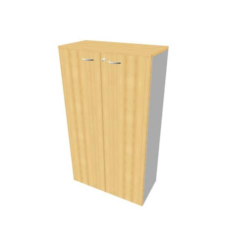 Armadio con ante battenti e scocca in pannello di conglomerato ligneo spessore 18 mm, rivestito su entrambi i lati con pannello melaminico antiriflesso, antigraffio e lavabile. Fianchi e fondo spessore 18 mm con bordatura sui 4 lati in tinta. Schienale spessore 8 mm. Ripiani spessore 25 mm con bordatura 4 lati in tinta e reggipiani a scomparsa spostabili in altezza ogni 32 mm. Coperchio spessore 25 mm con bordatura 3 lati in vista in ABS antiurto, in tinta, spessore 2 mm. N. 5 piedini livellatori in ABS regolabili in altezza dall'interno del mobile. Ante battenti in pannello di conglomerato ligneo spessore 18 mm rivestito con melaminico antiriflesso, antigraffio e lavabile, bordato sui 4 lati in ABS antiurto in tinta spessore 1,5 mm. Cerniere in metallo con apertura a 105°. Serratura con chiave pieghevole antinfortunistica. Scocca grigio argento. Finiture faggio. Dimensione: 90x45xH.160 cm. Quadrifoglio Sistemi d'Arredo presta particolare attenzione alle tematiche della qualità, dell’ambiente e della sicurezza per fornire un prodotto e un servizio all’altezza delle aspettative del mercato. L’azienda ha raggiunto le certificazioni UNI EN ISO 9001/2015, UNI EN ISO 14001/2015 e UNI EN ISO 45001/2018. Nel rispetto e nella tutela dell’ambiente, i prodotti Quadrifoglio sono certificati e garantiti da FSC™ e PANNELLO ECOLOGICO.