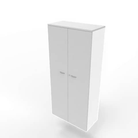Armadio super con ante battenti e scocca in pannello di conglomerato ligneo spessore 18 mm, rivestito su entrambi i lati con pannello melaminico antiriflesso, antigraffio e lavabile. Fianchi e fondo spessore 18 mm con bordatura sui 4 lati in tinta. Schienale spessore 8 mm. Ripiani spessore 25 mm con bordatura 4 lati in tinta e reggipiani a scomparsa spostabili in altezza ogni 32 mm. Coperchio spessore 25 mm con bordatura 3 lati in vista in ABS antiurto, in tinta, spessore 2 mm. N. 5 piedini livellatori in ABS regolabili in altezza dall'interno del mobile. Ante battenti in pannello di conglomerato ligneo spessore 18 mm rivestito con melaminico antiriflesso, antigraffio e lavabile, bordato sui 4 lati in ABS antiurto in tinta spessore 1,5 mm. Cerniere in metallo con apertura a 105°. Serratura con chiave pieghevole antinfortunistica. Scocca bianca. Finiture grigio. Dimensione: 90x45xH.200 cm. Quadrifoglio Sistemi d'Arredo presta particolare attenzione alle tematiche della qualità, dell’ambiente e della sicurezza per fornire un prodotto e un servizio all’altezza delle aspettative del mercato. L’azienda ha raggiunto le certificazioni UNI EN ISO 9001/2015, UNI EN ISO 14001/2015 e UNI EN ISO 45001/2018. Nel rispetto e nella tutela dell’ambiente, i prodotti Quadrifoglio sono certificati e garantiti da FSC™ e PANNELLO ECOLOGICO.