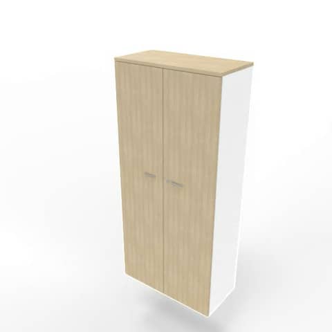 Armadio super con ante battenti e scocca in pannello di conglomerato ligneo spessore 18 mm, rivestito su entrambi i lati con pannello melaminico antiriflesso, antigraffio e lavabile. Fianchi e fondo spessore 18 mm con bordatura sui 4 lati in tinta. Schienale spessore 8 mm. Ripiani spessore 25 mm con bordatura 4 lati in tinta e reggipiani a scomparsa spostabili in altezza ogni 32 mm. Coperchio spessore 25 mm con bordatura 3 lati in vista in ABS antiurto, in tinta, spessore 2 mm. N. 5 piedini livellatori in ABS regolabili in altezza dall'interno del mobile. Ante battenti in pannello di conglomerato ligneo spessore 18 mm rivestito con melaminico antiriflesso, antigraffio e lavabile, bordato sui 4 lati in ABS antiurto in tinta spessore 1,5 mm. Cerniere in metallo con apertura a 105°. Serratura con chiave pieghevole antinfortunistica. Scocca bianca. Finiture rovere. Dimensione: 90x45xH.200 cm. Quadrifoglio Sistemi d'Arredo presta particolare attenzione alle tematiche della qualità, dell’ambiente e della sicurezza per fornire un prodotto e un servizio all’altezza delle aspettative del mercato. L’azienda ha raggiunto le certificazioni UNI EN ISO 9001/2015, UNI EN ISO 14001/2015 e UNI EN ISO 45001/2018. Nel rispetto e nella tutela dell’ambiente, i prodotti Quadrifoglio sono certificati e garantiti da FSC™ e PANNELLO ECOLOGICO.