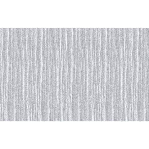 Rotolo di carta crespa metallizzata colorata imbustato singolarmente, grammatura 80 g. Formato 50x150 cm, colore argento.