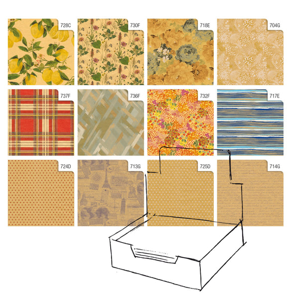 Scatola espositore da 100 fogli di carta avana da 60gr. Fogli da 70x100cm in fantasie assortite