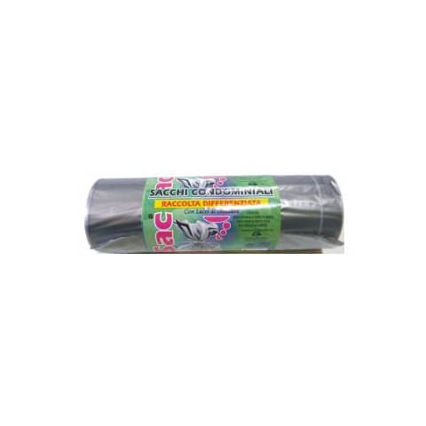 Sacchi pattumiera di colore grigio trasparente in mdpe rigenerato + plt lineare. Formato 70x110cm 110lt 22mic. In rotolo compatto da 10 sacchi con fascetta. Prodotto con alta resistenza meccanica. Adatti per la raccolta differenziata.