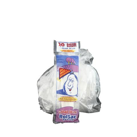 ROLSAC-QUALITY - Sacchi immondizia per rifiuti inorganici rolsac 27 l 50x60 cm - 16 µm trasparente - rotolo da 20 pezzi - 10064 - Confezione da 6 PZ