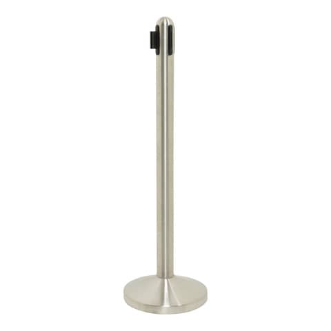 Colonnina in acciaio inox satinato h100cm con nastro in nylon da 210cm. Ogni colonnina ha 4 diversi punti per l'aggancio del nastro retrattile. Adatta sia per uso interno che esterno. Ogni colonnina comprende un attacco extra per fissare il nastro alla parete. Peso: 12kg.