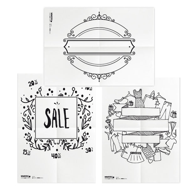 Set stencil a tema sconti / offerte, ideali per decorare le vetrine. Su fogli in carta dimensione a2.