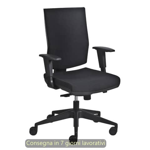 Poltrona semi-direzionale Aura Syncro con schienale ergonomico e in tessuto imbottito ignifugo. Colore nero. Meccanismo Syncro bloccabile in 4 posizioni, regolabile in altezza con cremagliera up-down. Regolazione sincronizzata dell’inclinazione del sedile e dello schienale. Regolazione di tensione e sicurezza anti-ritorno. Braccioli regolabili in altezza. Sedile regolabile in altezza da 39 a 51 cm, imbottito ad alta densità con elegante tappezzeria ignifuga con fasce laterale cucite. Dimensioni 68 x 68 x 120 cm. Misure sedile L. 50 x P. 47 cm. Misure schienale L. 45 x H. 55 cm. Ruote piroettanti D 65 mm. Base D 700 mm in nylon nero. Sedile con interno in PP con barre di rinforzo in acciaio, imbottitura densità 60 kg/m spessore 50 mm. Carter in PP antigraffio nero. Struttura schienale in poliammide nero, imbottitura densità 40 kg/m2 di spessore 20 mm. Certificata EN 1335 1.2.3 tipo A. Peso 18 kg, utilizzo sino a 120 kg - ore/giorno 8. A richiesta ordinabile nella versione No-Fire Ignifuga certificata ed Omologata CL 1 IM dal Ministero dell'Interno. Prodotto 100% Made in Italy. La garanzia è valida nell’ambito di un utilizzo normale e corretto della sedia e non si applica a quelle parti che sono naturalmente soggette ad usura, come i rivestimenti, le imbottiture e le superfici verniciate. La garanzia si applica a tutte quelle parti della sedia che ne garantiscono la funzionalità, come ruote, base, gas, meccanismi. Una qualsiasi manomissione o tentativo di riparazione da parte di persone non specializzate fa decadere automaticamente la garanzia. Questa garanzia non riconosce alcuna responsabilità o diritto di indennizzo per tutti gli eventuali danni, diretti o indiretti, causati da merce difettosa.