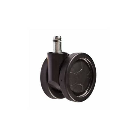 Set 5 ruote libere linea Work con base in nylon Ø65 mm. Adatte a pavimenti duri, non adatte a parquet. Ruote stampate ad innesto rapido, perno D11. Compatibili con tutte le sedute CKS. Colore nero. Prodotto 100% Made in Italy.