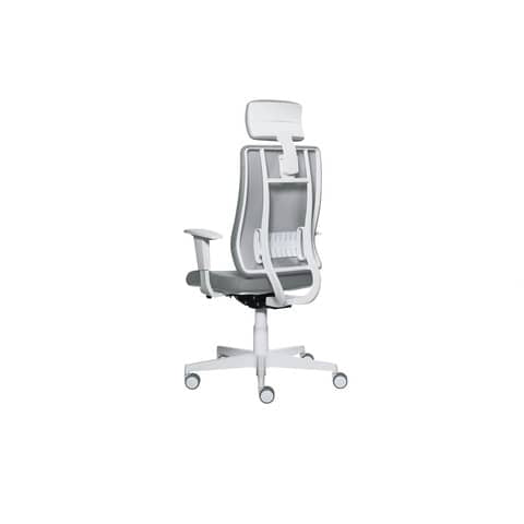 Poltrona semi-direzionale Liberty Syncro con struttura ergonomica di colore bianco e rivestimento in contrasto di colore grigio scuro. Braccioli regolabili e poggiatesta in tinta compresi. Meccanismo Syncro regolabile in 4 posizioni con regolazione di tensione e sicurezza anti-shock. Schienale ergonomico a rete con poggiatesta, regolabile in inclinazione e con supporto lombare regolabile in altezza. Dimensioni ingombro 68x70x120 cm. Dimensioni sedile L. 49 x P. 44 cm, schienale L. 45 xH. 60 cm. Sedile imbottito ad alta densità rivestito con tessuto ignifugo, regolabile in altezza da 40 a 54 cm e in inclinazione. Base D. 700 mm in poliammide caricato 30% FV certificata Ansi-Bifma. Ruote piroettanti D.65 mm. Sedile interno in multistrato di legno, imbottitura densità 40 kg/m3 di spessore 35 mm. Carter in PP antigraffio nero. Schienale con struttura in poliammide nero. Peso 16 kg, portata utile 120 kg 8 ore/giorno. Rete 100% poliestere ignifuga CL1 I. Certificata EN 1335-1:2020 tipo A. Prodotto 100% Made in Italy. La garanzia è valida nell’ambito di un utilizzo normale e corretto della sedia e non si applica a quelle parti che sono naturalmente soggette ad usura, come i rivestimenti, le imbottiture e le superfici verniciate. La garanzia si applica a tutte quelle parti della sedia che ne garantiscono la funzionalità, come ruote, base, gas, meccanismi. Una qualsiasi manomissione o tentativo di riparazione da parte di persone non specializzate fa decadere automaticamente la garanzia. Questa garanzia non riconosce alcuna responsabilità o diritto di indennizzo per tutti gli eventuali danni, diretti o indiretti, causati da merce difettosa.