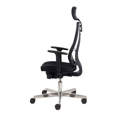 Poltrona semi-direzionale Liberty Syncro ergonomica con braccioli regolabili e poggiatesta e base in alluminio spazzolato. Colore nero. Meccanismo Syncro regolabile in 4 posizioni con regolazione di tensione e sicurezza anti-shock. Schienale ergonomico a rete con poggiatesta, regolabile in inclinazione e con supporto lombare regolabile in altezza. Dimensioni ingombro 68x70x120 cm. Dimensioni sedile L. 49 x P. 44 cm, schienale L. 45 xH. 60 cm. Sedile imbottito ad alta densità rivestito con tessuto ignifugo, regolabile in altezza da 40 a 54 cm e in inclinazione. Base D. 700 mm in poliammide caricato 30% FV certificata Ansi-Bifma. Ruote piroettanti D.65 mm. Sedile interno in multistrato di legno, imbottitura densità 40 kg/m3 di spessore 35 mm. Carter in PP antigraffio nero. Schienale con struttura in poliammide nero. Peso 16 kg, portata utile 120 kg 8 ore/giorno. Rete 100% poliestere ignifuga CL1 I. Certificata EN 1335-1:2020 tipo A. Prodotto 100% Made in Italy. La garanzia è valida nell’ambito di un utilizzo normale e corretto della sedia e non si applica a quelle parti che sono naturalmente soggette ad usura, come i rivestimenti, le imbottiture e le superfici verniciate. La garanzia si applica a tutte quelle parti della sedia che ne garantiscono la funzionalità, come ruote, base, gas, meccanismi. Una qualsiasi manomissione o tentativo di riparazione da parte di persone non specializzate fa decadere automaticamente la garanzia. Questa garanzia non riconosce alcuna responsabilità o diritto di indennizzo per tutti gli eventuali danni, diretti o indiretti, causati da merce difettosa.