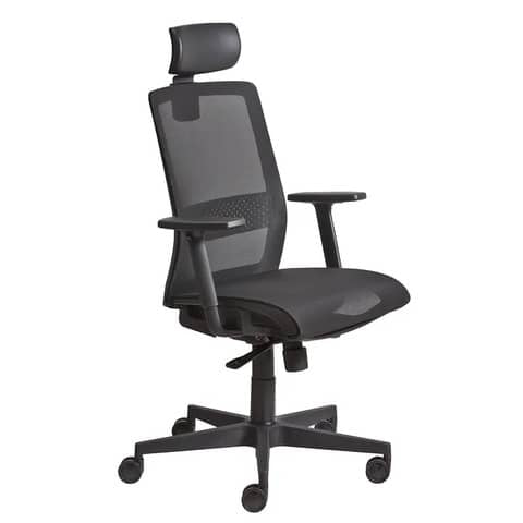 Poltrona semi-direzionale Olimpia Syncro con braccioli regolabili e poggiatesta e schienale ergonomico a rete. Colore nero. Meccanismo Syncro regolabile in 4 posizioni con traslatore longitudinale del sedile e regolazione di tensione e sicurezza anti-shock. Schienale a rete con poggiareni flessiblile e regolabile. Sedile imbottito ad alta densità rivestito con tessuto ignifugo. Dimensioni ingombro 68 x 66 x 95 cm. Misure sedile L. 50 x P. 47 cm, schienale L. 49 x H. 54 cm, poggiatesta L. 26 x H. 16 cm. Regolazione in altezza del sedile da 41 a 52 cm. Base D.700 mm in poliammide caricato 30% FV. Ruote piroettanti D. 65 mm. Sedile interno in multistrato di faggio 11 mm con imbottitura alta densità 40 kg/m3 di spessore 40 mm. Carter in PP antigraffio nero. Struttura schienale in poliammide nero. Rete 100% poliestere. Supporto lombare flessibile in PP. Peso 18 kg, portata utile 120 kg 8 ore/giorno. Rispetta il d.lgs 81/08 all.xxxiv. Prodotto 100% Made in Italy. La garanzia è valida nell’ambito di un utilizzo normale e corretto della sedia e non si applica a quelle parti che sono naturalmente soggette ad usura, come i rivestimenti, le imbottiture e le superfici verniciate. La garanzia si applica a tutte quelle parti della sedia che ne garantiscono la funzionalità, come ruote, base, gas, meccanismi. Una qualsiasi manomissione o tentativo di riparazione da parte di persone non specializzate fa decadere automaticamente la garanzia. Questa garanzia non riconosce alcuna responsabilità o diritto di indennizzo per tutti gli eventuali danni, diretti o indiretti, causati da merce difettosa.