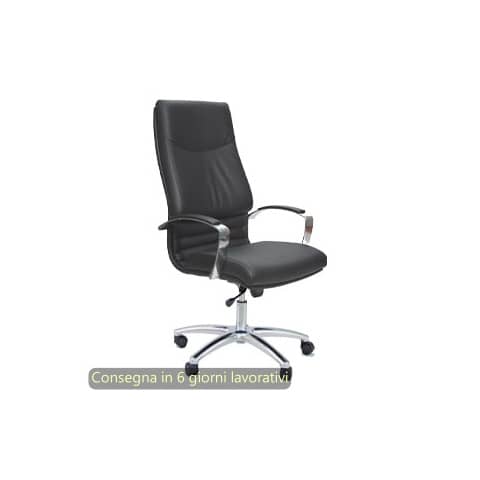 Poltrona direzionale Venus CR Alta in pelle nera, base in alluminio spazzolato e braccioli in acciaio cromato con appoggio imbottito. Dimensioni ingombro 68 x 75 x 123 cm, sedile L. 53 x P. 47 cm, schienale L. 51 x P. 73 cm. Base in alluminio lucidato D. 70 cm e ruote piroettanti D.50 in nylon. Meccanismo oscillante a rotazione centrata con 1 blocco in posizione operativa. Regolazione di tensione in base al peso. Scocca con interno in multistrato di faggio spessore 10 mm. Imbottitura in PU espanso D30 kg/m3 spessore 80 mm. Rivestimenti in vera pelle con retro in Ecopelle. Peso 22 kg, portata massima 140 kg. Prodotto 100% Made in Italy. La garanzia è valida nell’ambito di un utilizzo normale e corretto della sedia e non si applica a quelle parti che sono naturalmente soggette ad usura, come i rivestimenti, le imbottiture e le superfici verniciate. La garanzia si applica a tutte quelle parti della sedia che ne garantiscono la funzionalità, come ruote, base, gas, meccanismi. Una qualsiasi manomissione o tentativo di riparazione da parte di persone non specializzate fa decadere automaticamente la garanzia. Questa garanzia non riconosce alcuna responsabilità o diritto di indennizzo per tutti gli eventuali danni, diretti o indiretti, causati da merce difettosa.