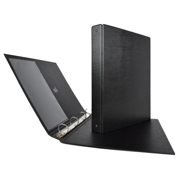 Raccoglitore in colpan® (cartone rivestito in pvc con meccanismo a 4 anelli tondi e tasca interna trasparente. Utili in ufficio, a scuola e a casa. Formato esterno: 255x310 mm. Formato contenuto: 220x300 mm (a4. Dorso: 25 mm. Diametro anelli: 16 mm. Colore nero.