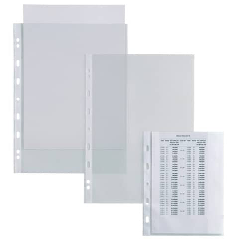 Buste Atla 150 in Polipropilene finitura buccia d’arancia, alto spessore, con foratura universale rinforzata, trasparenti. Ideali per archiviare qualsiasi tipo di documento, fotocopie e stampe. Formato contenuto 21x29,7 cm. Confezione da 50 pezzi.