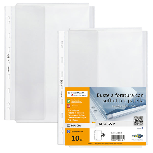 SEI-ROTA - 10 buste forate atla gs p c/soffietto e patella a4 trasp. Buccia sei rota - 662516