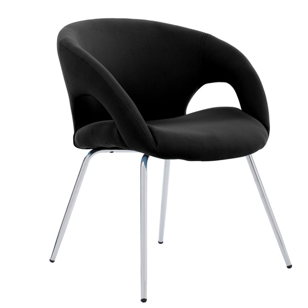 Seduta visitatore con rivestimento in tessuto. Struttura in acciaio cromato. Ideale anche per sale attesa. Dimensioni cm l59x p57,5 x h72cm.