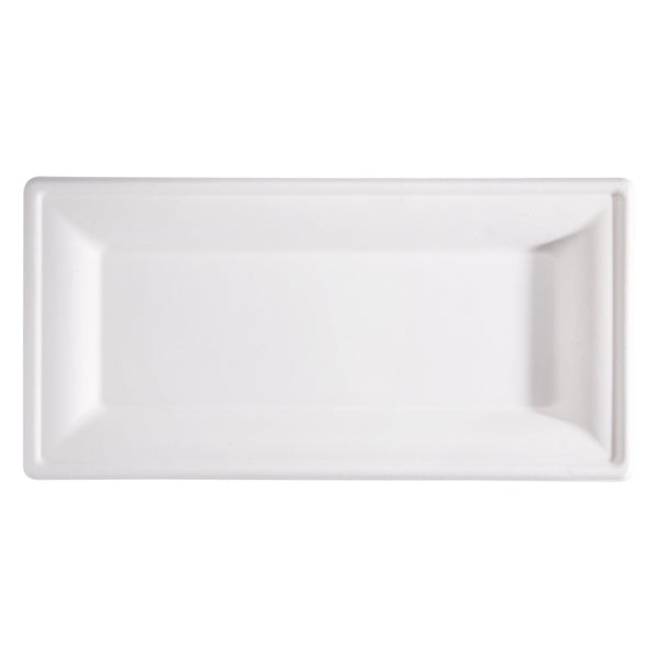 SIGNOR-BIO - 50 piatti rettangolari monouso in canna da zucchero 26x13cm bianco signor bio - BPR001BIO50B