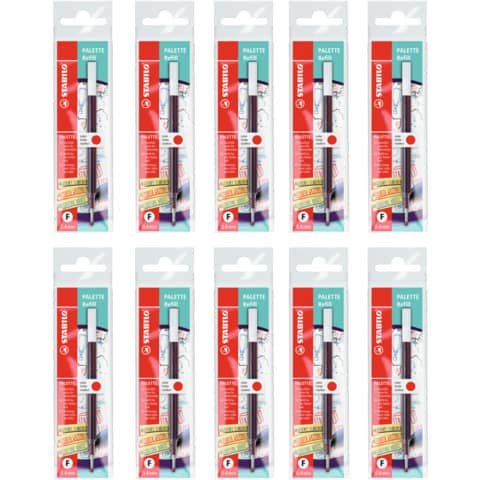 STABILO - Refill per penna roller a scatto palette rosso conf. 10 pezzi - 268/040-01 - Confezione risparmio da 5 PZ
