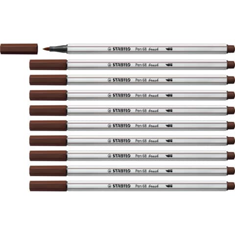 Con il pennarello STABILO Pen 68 brush puoi controllare perfettamente i tuoi tratti, creando bellissime lettere in vero stile hand lettering. Potrai realizzare bellissime opere in modo semplice e veloce. Con la sua punta flessibile, questo pennarello si aggiunge alla famiglia Pen 68 ed è adatto sia ai principianti che agli artisti esperti. Variando la pressione sulla punta puoi usare il ''pennello'' per creare linee spesse o sottili sulla carta. Puoi creare altri effetti speciali con l'inchiostro a base d'acqua: bellissime sfumature di colore o fantastici acquarelli. Strumento ideale per decorazioni e lavori fai da te. Risultati garantiti e garanzia tedesca. Ideale per chi è alle prime armi con il brush lettering: grazie alla sua punta a pennello molto flessibile, hai subito la percezione della pressione che stai facendo. Usa la giusta pressione per disegnare line più spesse o più sottili – la punta è stata sviluppata proprio per i principianti! Per artisti più esperti, Pen 68 brush copre un ampio spettro creativo: dalle applicazioni artistiche all'ombreggiatura e all'acquarello. Combina le tue sfumature preferite e i risultati saranno unici. L'inchiostro a base d'acqua fornisce un ulteriore tocco creativo: usalo per creare fantastici effetti speciali come la fusione dei colori o gli effetti dell'acquerello Pen 68 brush dura 24 ore senza cappuccio e la punta non secca! Sviluppato da e insieme ai nostri fan - realizzato per soddisfare tutte le esigenze creative. Realizzato in Germania. Prodotto in conformità con il regolamento REACH (CE) n. 1907/2006. Prodotto in conformità con la direttiva sulla sicurezza dei giocattoli 2009/48/EC. Prodotto in conformità con la norma europea EN71 – 1, 2, 3 e 9. Marchio CE. Prodotto in conformità con la direttiva 94/62/EC sugli imballaggi e i rifiuti di imballaggio. Età consigliata: 8 anni in su. Colore bruno.
