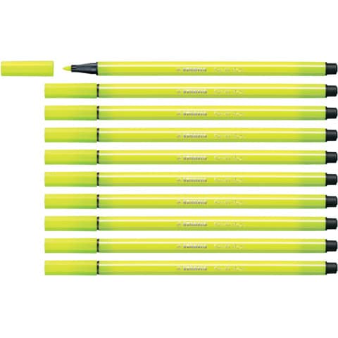 Pennarelli con punta in fibra. Resistono fino a 24 ore senza il cappuccio. Inchiostro a base d’acqua, inodore. Parzialmente acquarellabile. Cappuccio ventilato anti soffocamento. Tratto 1 mm.