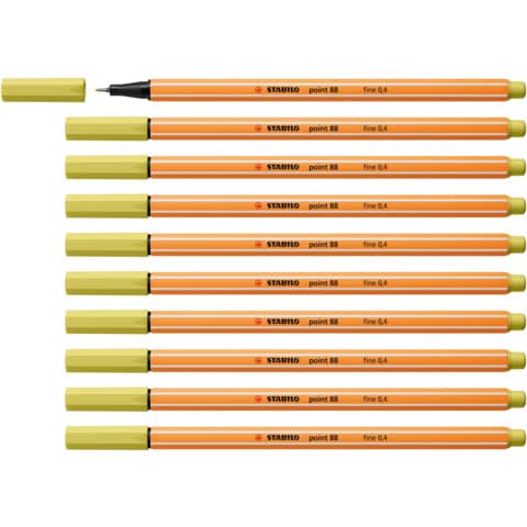 Fineliner con punta rinforzata in metallo. Dura a lungo anche senza cappuccio. Ampiezza tratto 0,4 mm. Parzialmente acquarellabile. Cappuccio ventilato anti soffocamento. Colore senape.