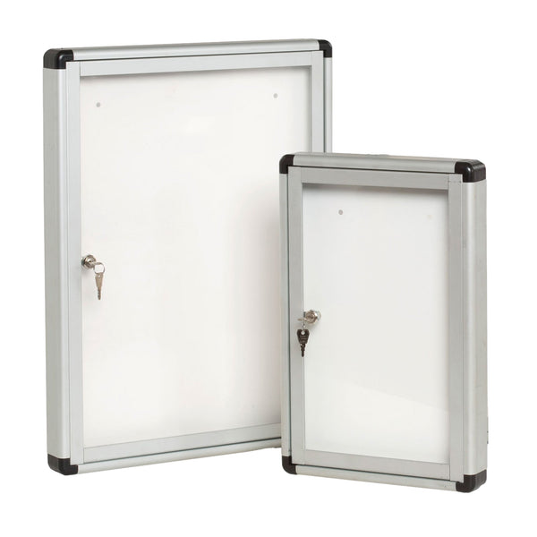 Bacheca starline verticale per interni in alluminio con fondo magnetico ad ante a battente. Ante in policarbonato trasparente. Formato: 9xa4 formato esterno: 700x1000x45mm. Profondita' utile interna 35/40mm.