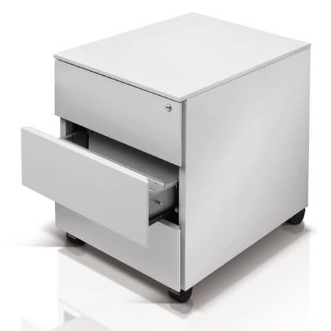 Cassettiera Technical 2 in robusta lamiera d'acciaio su ruote a 3 cassetti, dim. 41x58x55,3 H cm, altezza frontalini 16cm, colore grigio.