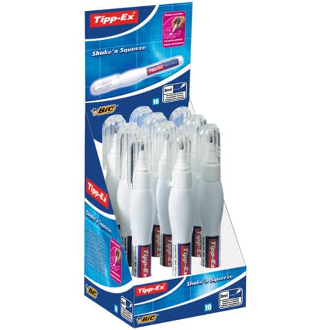 La penna correttore Tipp-Ex Shake’n’Squeeze high tech è dotata di una valvola anti-perdite. Il fusto di nylon resiste alle cadute e alle variazioni di temperatura. L’impugnatura comprimibile è sensibile al tatto per adattare il flusso alle dimensioni dell’area da correggere. La punta fine in metallo è progettata per eliminare con precisione ciò che vuoi cancellare. Ogni penna correttore Tipp-Ex Shake’n’Squeeze viene sottoposta a oltre 30 controlli di qualità durante il processo di fabbricazione, da ogni singolo componente al prodotto finito.
