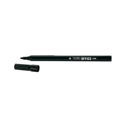 Marcatore con inchiostro a base acqua. Non passa la carta. Punta fine e pennino indeformabile di lunga durata. Particolarmente adatto per l'ufficio. ''Made in Italy''. Punta tonda tratto 0,7 mm. Colore nero. Conf. 12 pezzi.